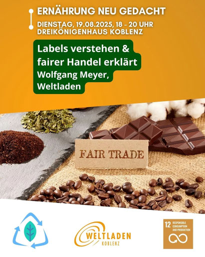 Der Weltladen Koblenz setzt sich seit mehr als 40 Jahren für gerechten Welthandel ein. Er informiert über Modellprojekte fairen Handels und klärt über den Zusammenhang zwischen unserem Konsumverhalten und dessen Auswirkungen in den Produzentenländern auf. Der Weltladen Koblenz bietet vielfältige Produkte aus fairem Handel an, die umweltschonend und menschenwürdig produziert werden. Er ist eine Initiative des Gerechte Welt e.V. und wird von ehrenamtlichen MitarbeiterInnen getragen.